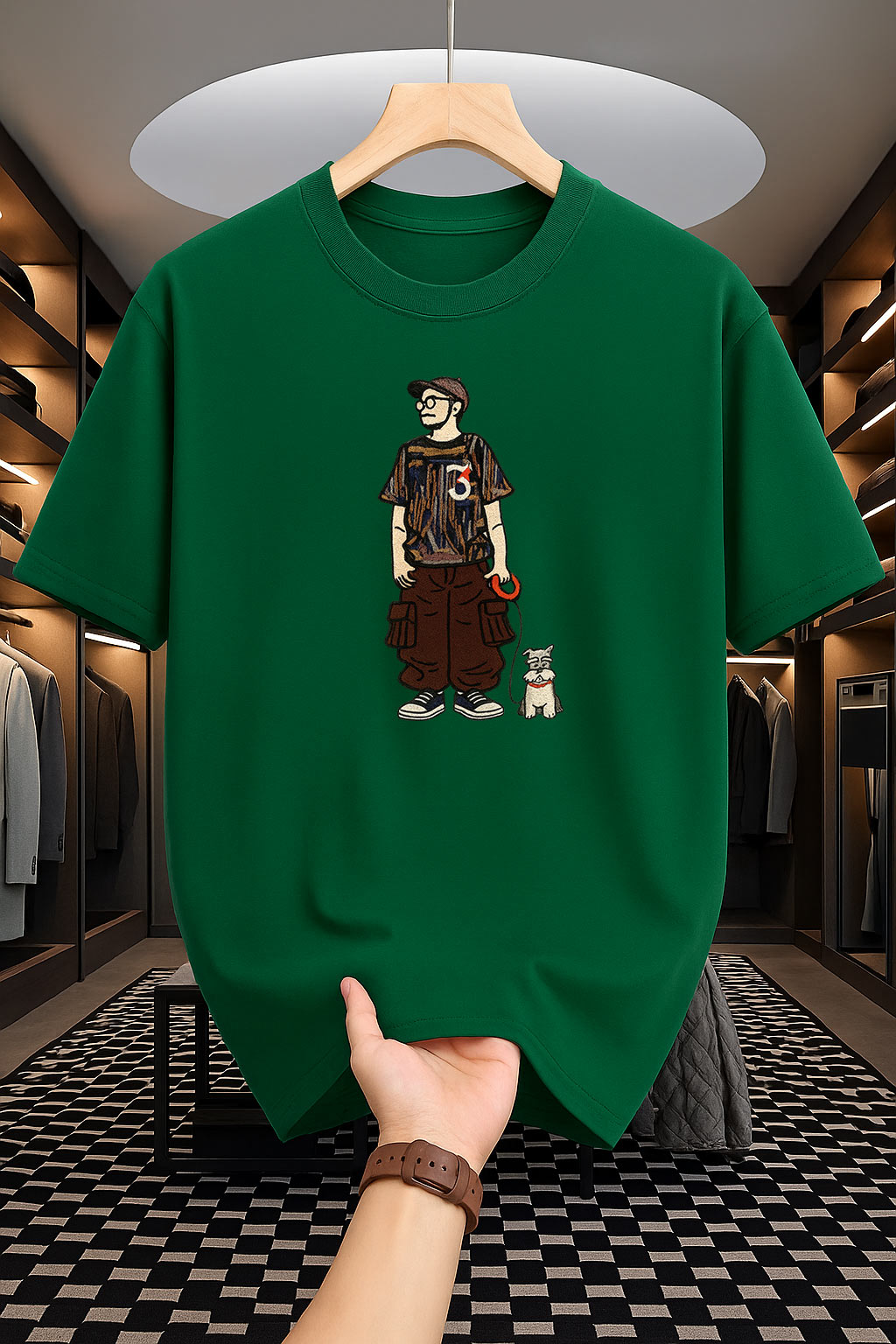 Drop Shoulder Print T-Shirt - Cat Design